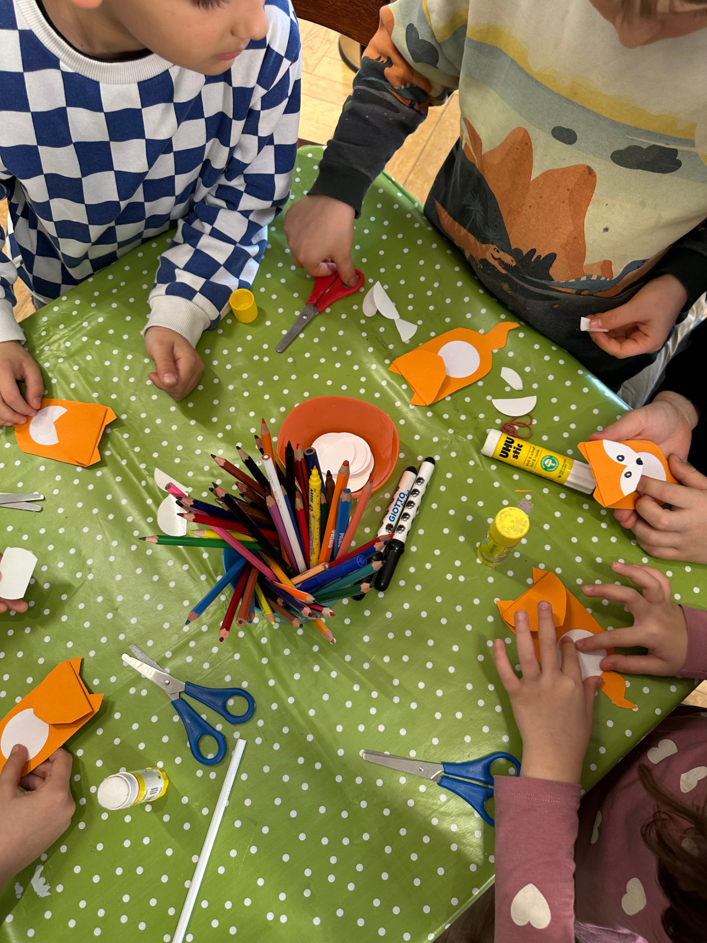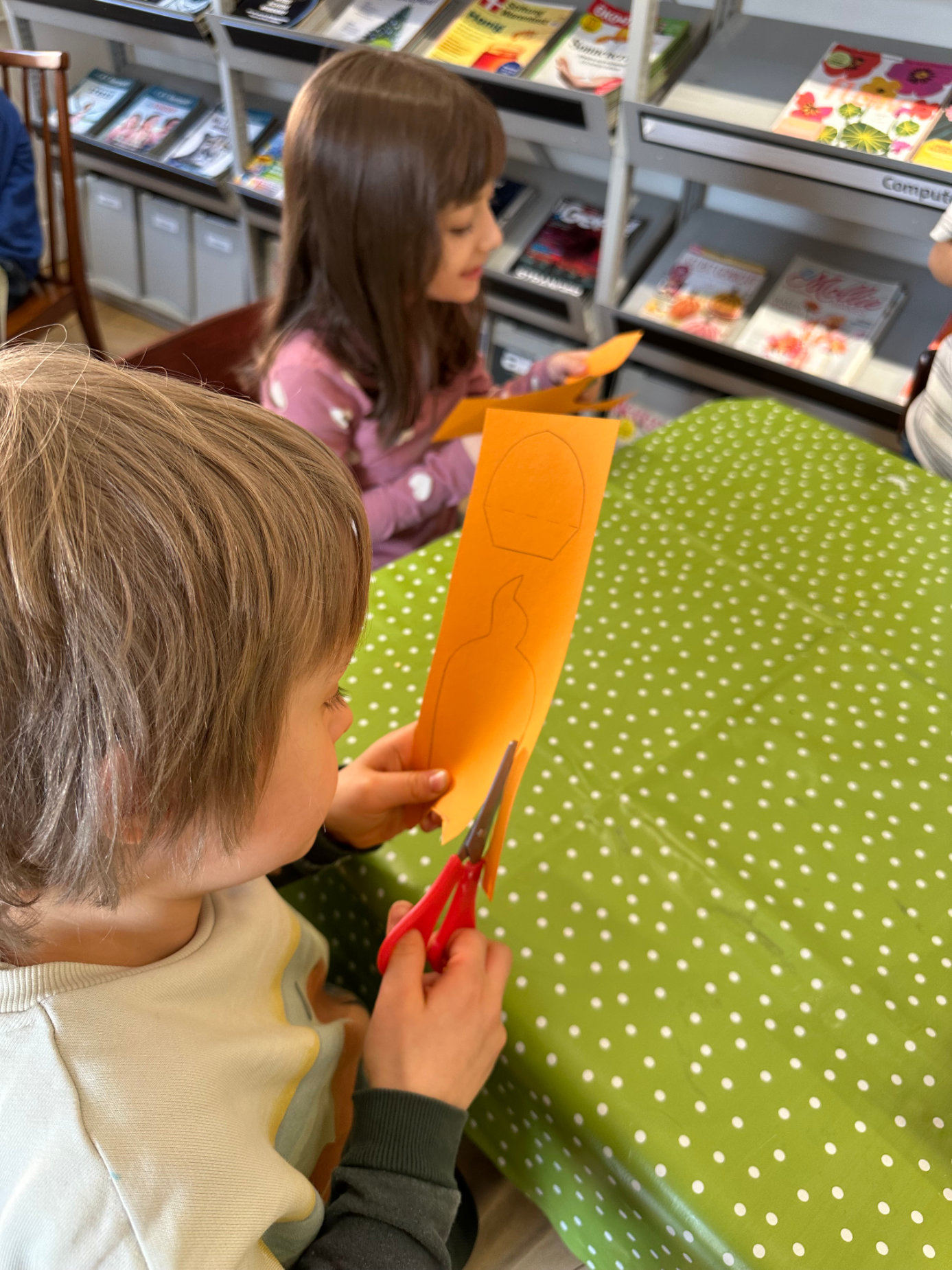 Zum Abschluss durften die Kinder noch kreativ werden. Passend zur Geschichte bastelte jedes Kind ein Lesezeichen mit einem Fuchs, der auch eine wichtige Rolle im Buch spielt. Natürlich durften die Lesezeichen anschließend mit nach Hause genommen werden. 🦊